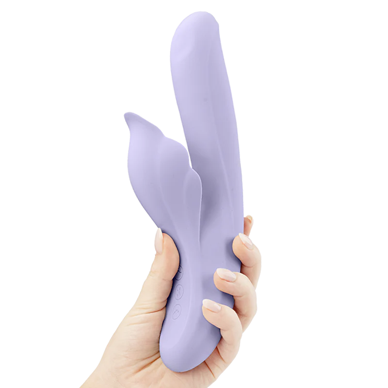 This dual-action vibrator features a thrusting shaft with 2 speeds and 5 patterns of stimulation, a thumping tip featuring another 5 speeds, and a soft and flexible clitoral teaser with 3 speeds and 7 patterns of vibration. If that’s not enough, Seductive Bloom is also app controlled. All 22 modes can be independently controlled with the buttons on the handle or through the linkable app.