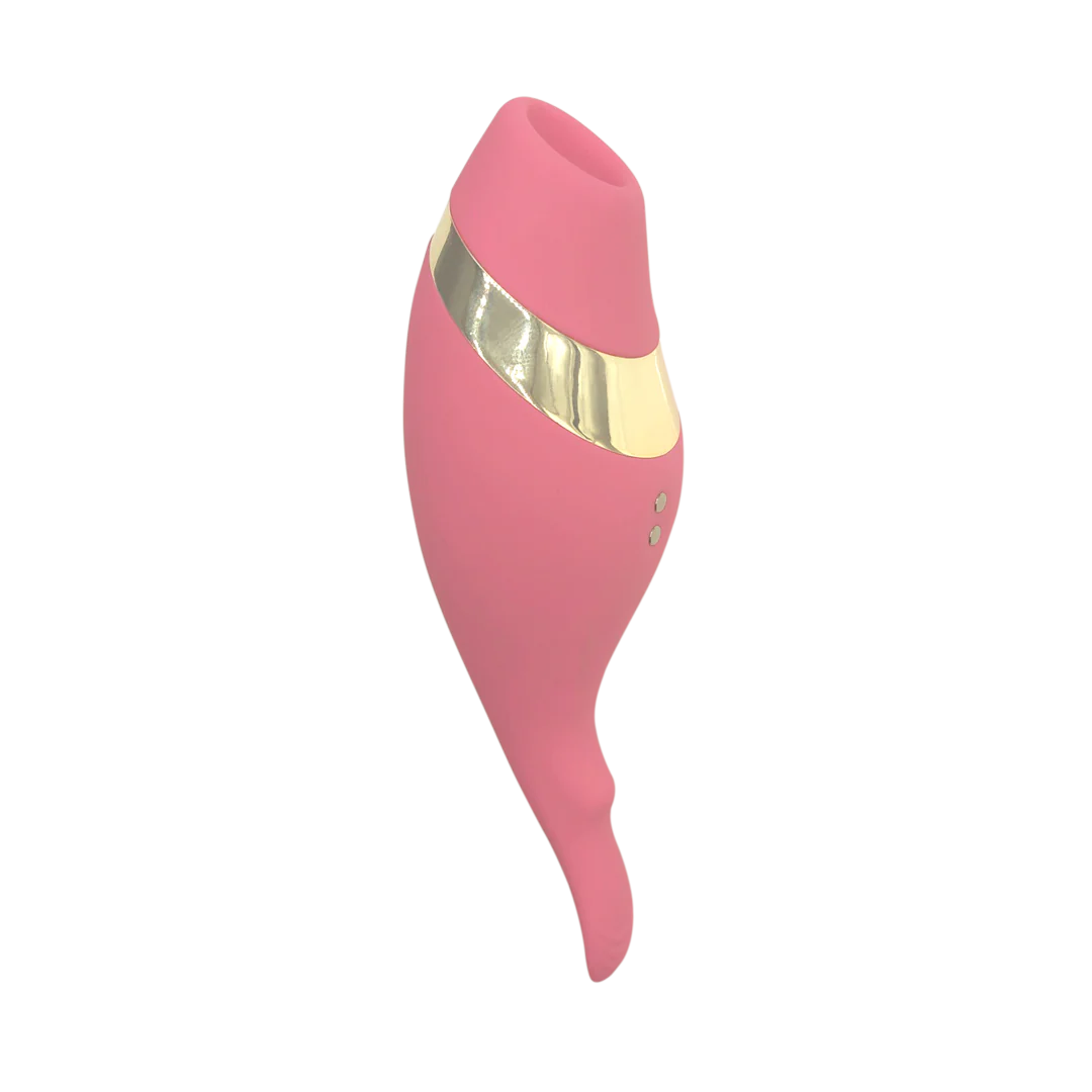 Meet your match with The Adventurer, an exclusive invitation to pleasure. This expertly crafted accessory allows you to explore new dimensions of desire with different types of clitoral stimulation. Set in premium silicone, the gold accent adds a luxe touch while the rounded shape fits perfectly in hand. Let the textured end tantalize with multiple vibration speeds and patterns or fit the accessory’s opening around the clitoris for air pressure that takes your breath away.