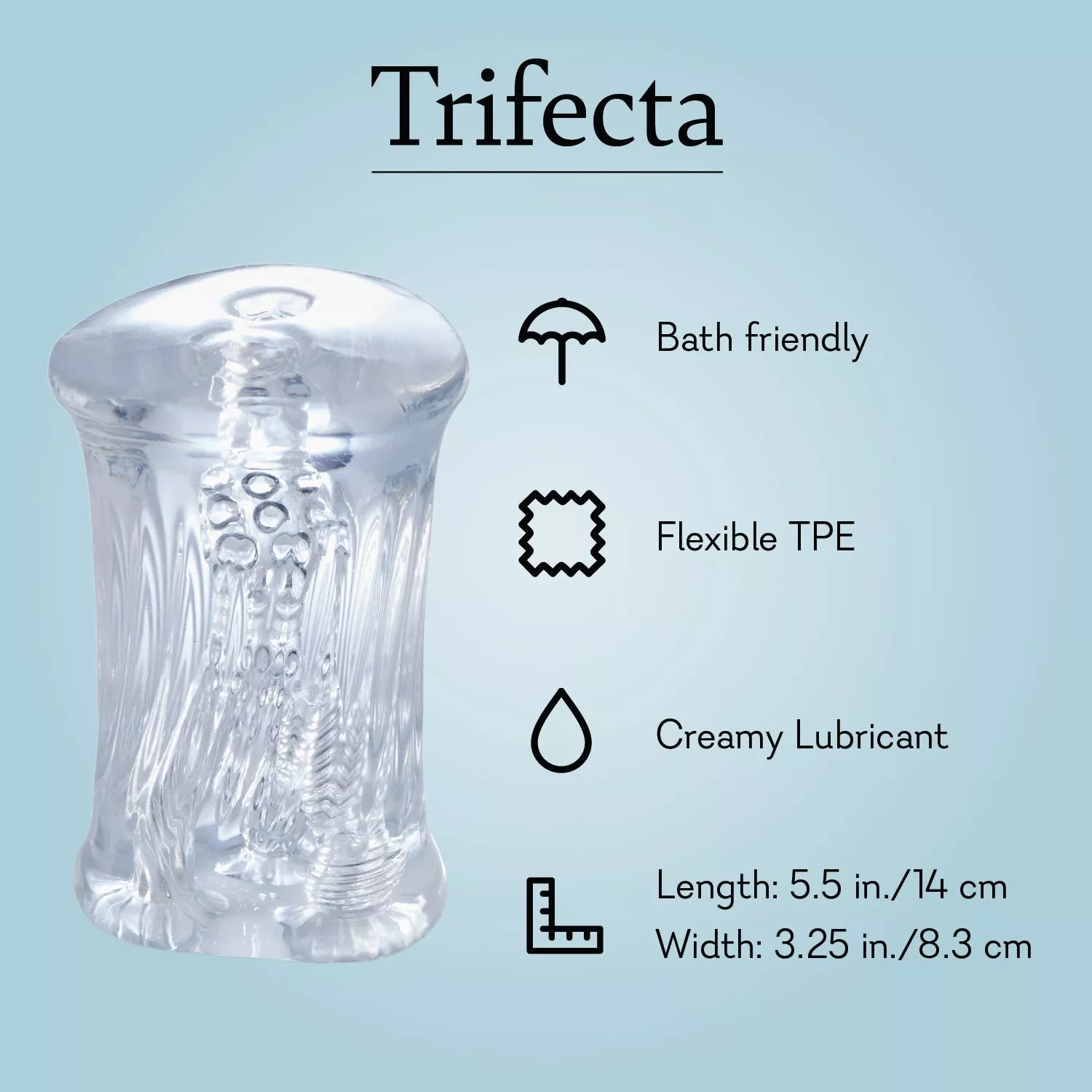 Why make a choice when you can have it all? Say hello to Trifecta, our multi-channeled masturbator that puts pleasure in your hands.