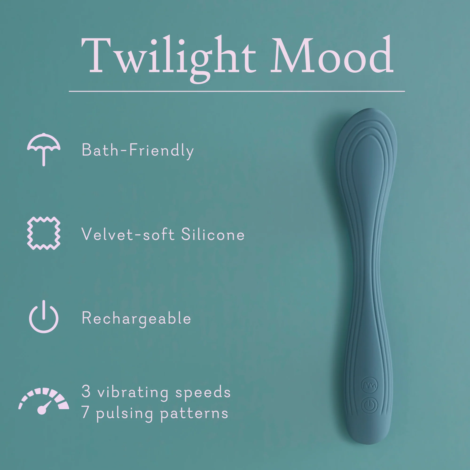 Overwhelming you with breathtaking vibration from the inside out, Twilight Mood bends to your every seductive whim with 10 vibrating speeds and pulsing patterns. Keep this flexible wand vibrator to yourself for clitoral massage or use with a partner for twice the satisfaction.
